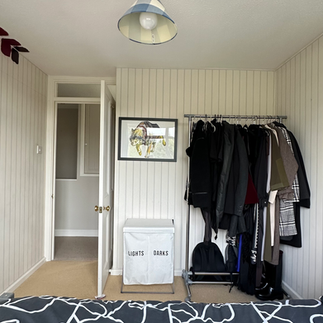 After successfully tackling my office, we decided it was time to transform our guest bedroom. The first image shown is what was included on the house listing and when we moved in, we moved Masons existing bed into the space so our guests had someone to stay. We had a spare clothes rail so we added that for seasonal jackets. We knew that we wanted this space to be dual purpose; Mason's games room, and a guest bedroom. It also needs to have ample storage options for things like seasonal clothing, decorations for hosting celebrations, and gifts. The main purpose of the room will be a space for Mason to play Xbox, which he usually prefers minimal natural light for to minimise the glare on the TV. The secondary purpose being a guest room, we decided we could go bold and lean into a darker, moodier style of design for the space. We wanted to create something that was warm, inviting, sexy and has wow factor!